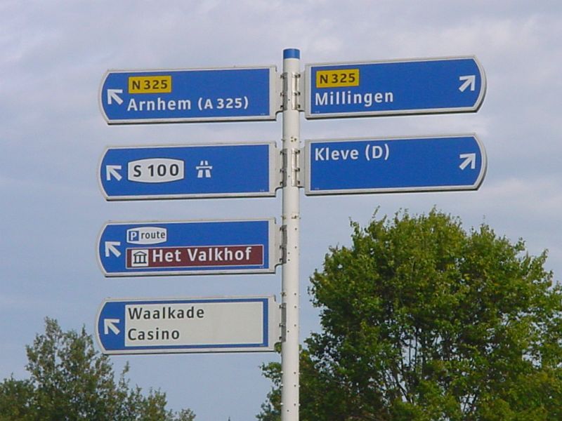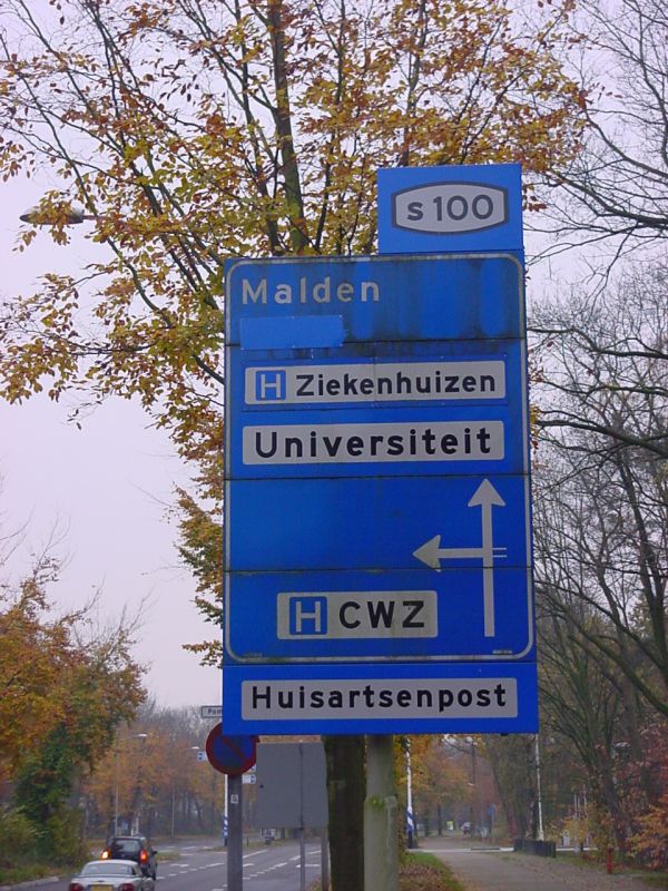 In plaats van S-route staat op de bewegwijzering S 100 (meestal met hoofdletter en spatie).
