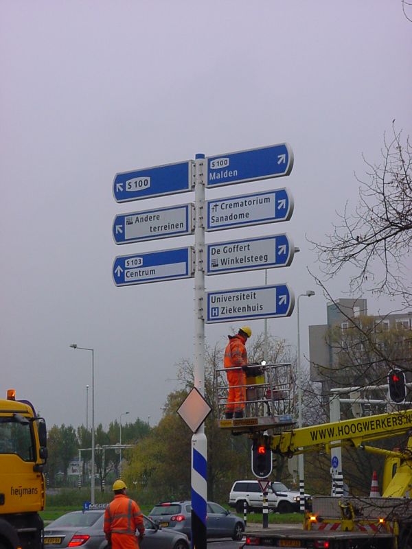 Op de bewegwijzering op het Keizer Karelplein bij de Graafseweg stond aanvankelijk S 100. Na drie maanden is deze aanduiding alsnog vervangen door S 103.
